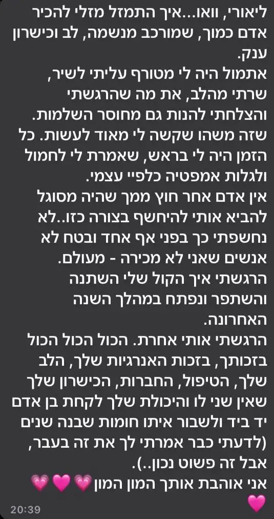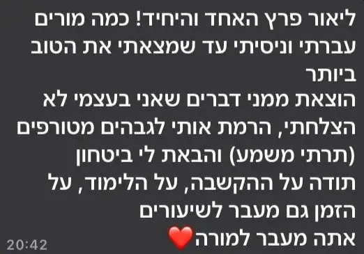 לאורך הדרך, הבנתי שהמפתח להצלחה טמון לא רק בטכניקה אלא גם בגישה אישית וקשובה. כשחוויתי את השינוי המשמעותי בחיי, והפכתי לזמר פעיל שמופיע גם מול 10,000 אנשים בקהל, החלטתי שאני רוצה לעזור לאחרים לעבור את אותו תהליך מרגש. הפכתי למורה לפיתוח קול עם מטרה אחת ברורה: להעניק לכל תלמיד את הכלים והביטחון לשלוט בקולו ולהופיע בהבנה שאין דבר שלא יצליח לעשות עם הקול שלו.
